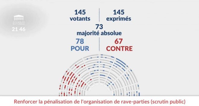Le texte défendu par le groupe Horizons, adopté en commission la semaine dernière, a été approuvé ce jeudi 9 avril à l’Assemblée nationale. Il prévoit des sanctions de « six mois d’emprisonnement et de 5 000 euros d’amende » pour les organisateurs. Actuellement, ces derniers s’exposent à une contravention de 1 500 euros, mais il n’existe pas d’infraction spécifique sanctionnant la participation. Il a donc été adopté en première lecture par 78 voix contre 67, avec le soutien du camp gouvernemental et de l’extrême droite.